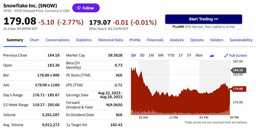 기존 SaaS(서비스형 소프트웨어) 기업의 반복적인 구독 수익과 달리 소비 기반 비즈니스 모델인 Snowflake는 경기 침체와 관련된 잠재적인 수요 감소로 인해 투자자들의 회의론을 불러 일으켰습니다.
