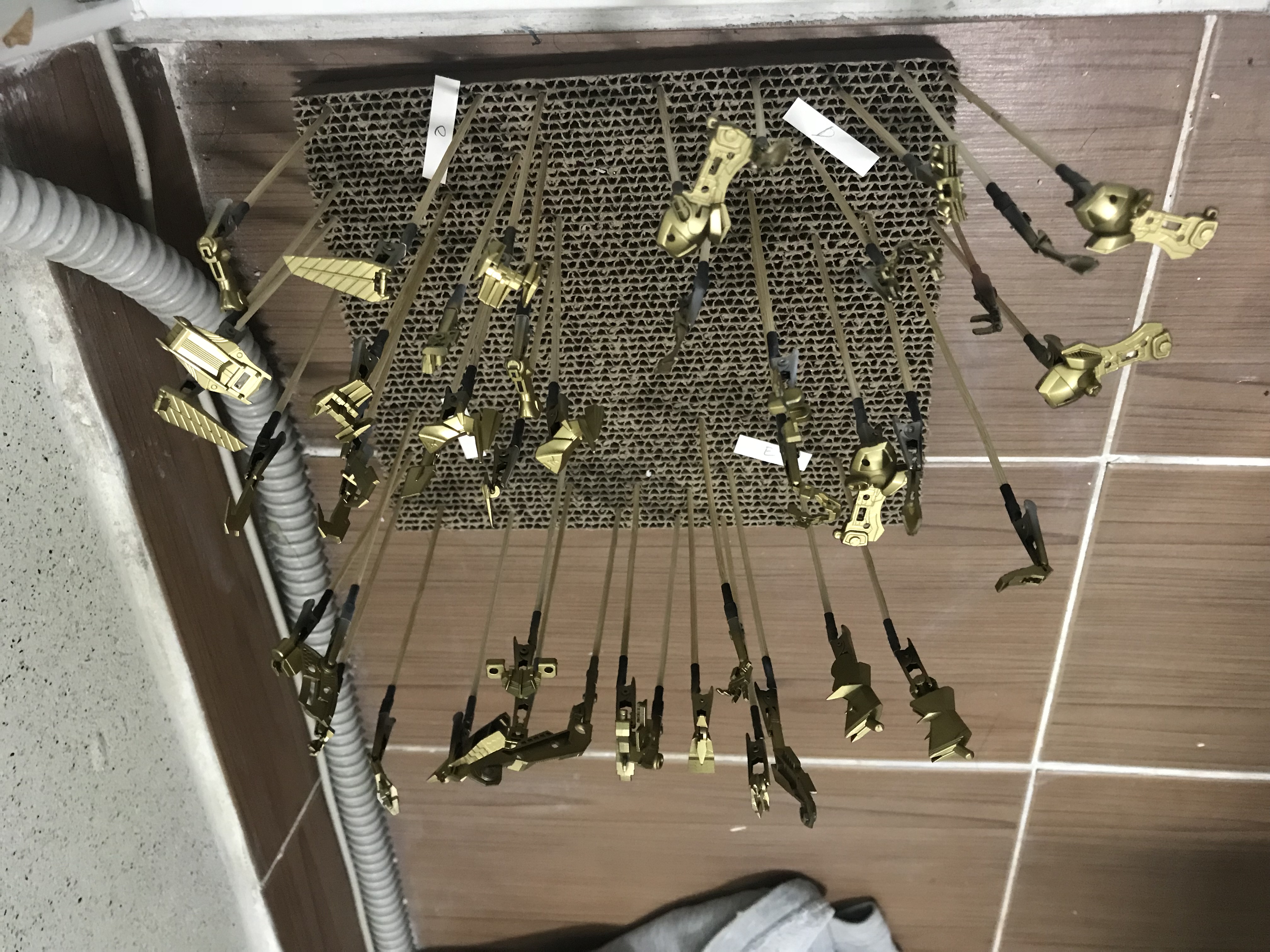 건프라 고수들은 부품 하나하나 도색하면서 완성도를 높여나가는데 실제 완성작을 보면 놀라움을 금치 못한다. 삐까뻔쩍하게 고급스러운 것이 있는가하면 여기저기 긁힌 상처가 나게 한 것도 있으며, 심지어 만화와 비슷하게 보이는 도색기법까지 있다. 그로인해 도색에 대한 욕심이 생기며, 도색을 하려면 기본적인 장비가 필요하다. 여기서 돈이 나가는데 하나하나씩 장만하다보면 어느새 지갑은 얇아져 있다.