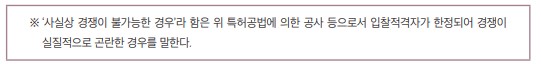 ④ 접적지역 등 특수지역에서 시행하는 공사로서 사실상 경쟁이 불가능한 경우