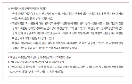 여기서는 국가계약과 지방계약의 내용이 다른 경우는 그 차이점을 알 수 있도록 기술하였고, 대분류사항(가∼마)은 국가계약을 기준으로 작성하였다.