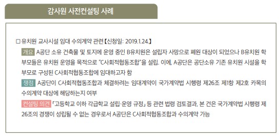 - 질의와 관련하여 금차공사가 시공과정상 다른 공사와 시간적·공간적으로 중복되는 공사로서 금차공사기간 대비 전차공사의 잔여공사기간 비율이 40% 이상인 공사라면 작업상의 혼잡 등으로 수의계약이 가능하나 전차공사의 공동수급체 구성원의 일부와는 수의계약이 가능하지 아니함 【행정안전부 회계제도과-436, ‘17.1.23.】