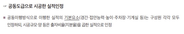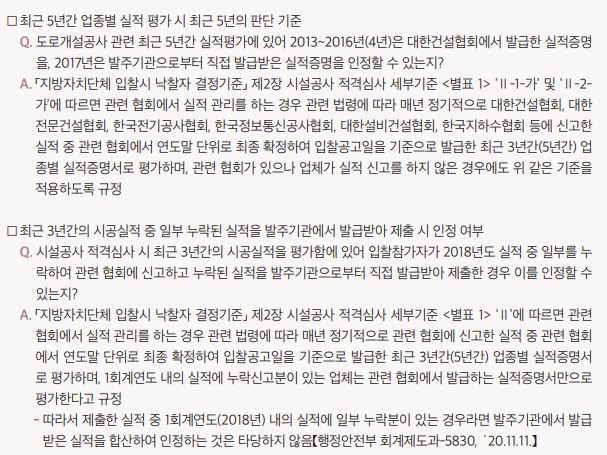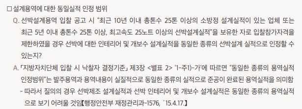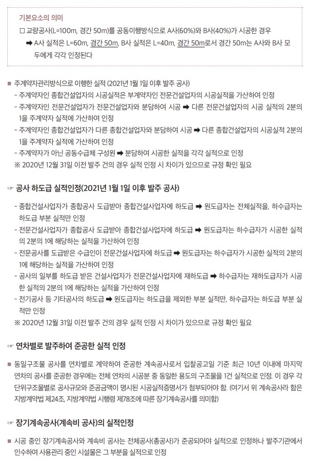 한편, 동일 종류의 실적이 1건의 실적 속에 혼재되어 있는 경우는 1건의 실적에 인정되는 실적 규모가 일부 포함되어 있다면 해당 부분을 1건의 실적으로 인정할 수 있다.