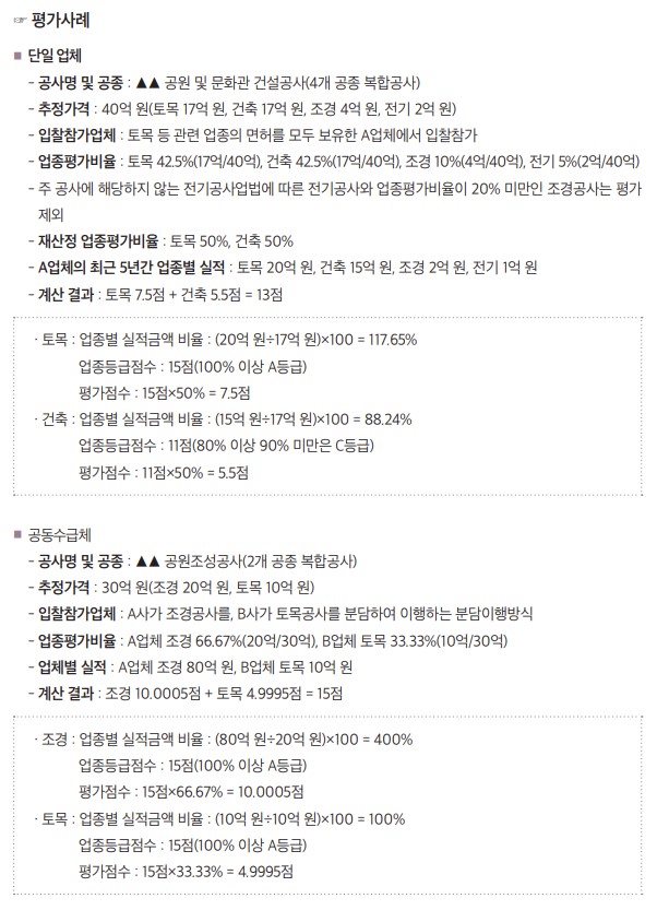 2. 해당 공사와 동일한 업종별 공사실적(실적계수)으로 평가