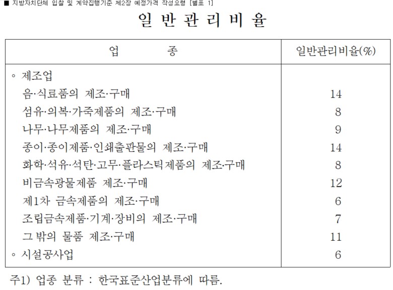 다. “가”의 일정요율이란 관련법에 의해 관계 중앙행정기관의 장이 정하는 법정요율을 말한다. 다만 법정요율이 없는 경우에는 공신력이 있는 기관의 통계자료 중 다수기업의 평균치 등을 토대로 각 지방자치단체의 장이나 계약담당자가 정한다.