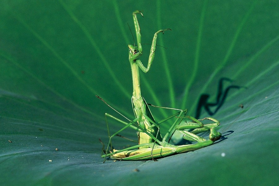 암컷 사마귀는 항상 그렇지는 않지만 종종 짝짓기를 한 수컷의 머리를 먹기도 합니다.