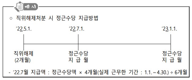가) 전년도 7월 1일부터 12월 31일까지의 처분기간 : 1월에 지급하는 정근수당에 반영