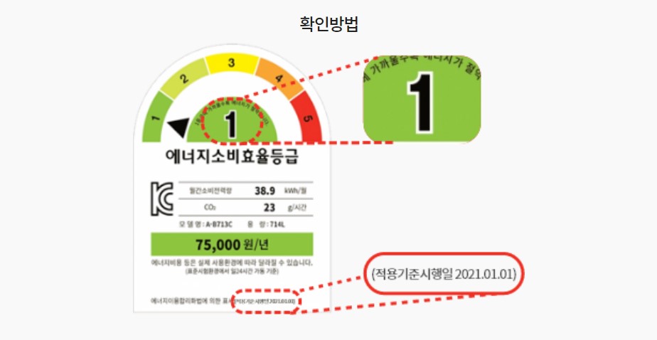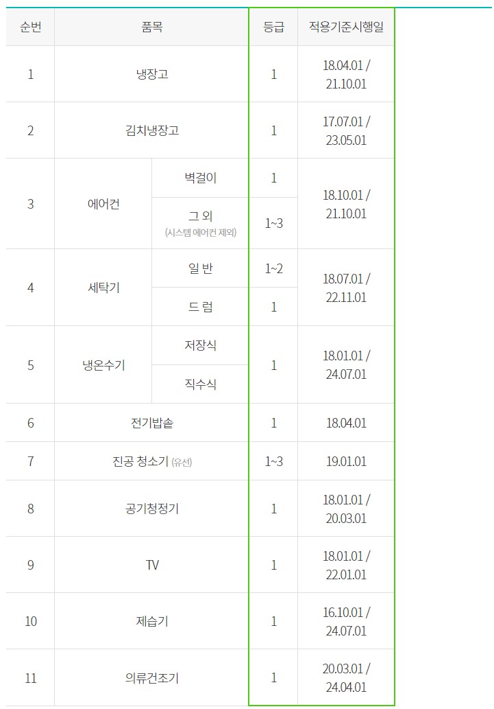 첫번째로 에너지소비효율 등급과 적용기준시행일 인데요.