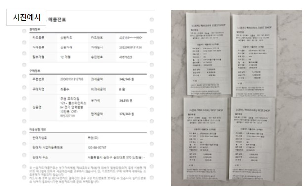 매장별로 각기 다른 형태로 발급되기 떄문에 지원 대상제품을 구매한 내역을 입증할 수 있는 서류면 가능합니다.